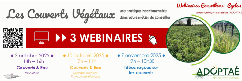 N’hésitez pas à vous inscrire pour le 3ème et dernier cycle des Webinaires Conseillers / ADOPTAÉ #les couverts végétaux.