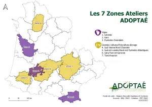 Le projet est mis en œuvre sur 7 zones tests réparties entre la viticulture et les grandes cultures/polycluture-élevage.