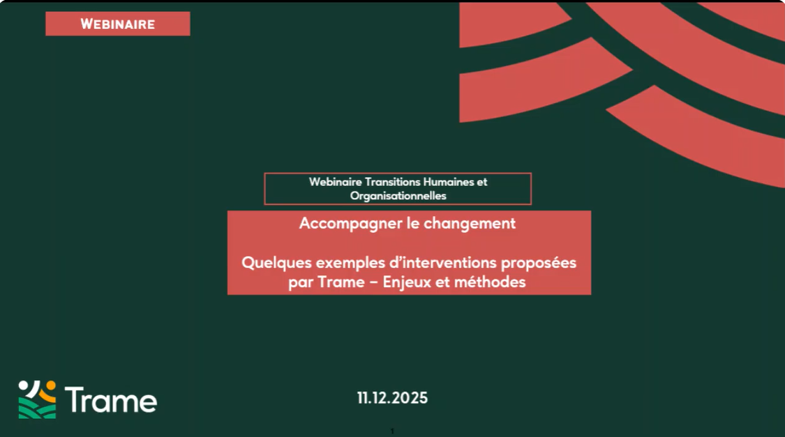 Dans ce webinaire, trois intervenants de Trame partagent leur expérience et leurs pratiques d’accompagnement du changement ainsi que des outils.