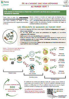 En 2025, le magasin de producteurs Au Panier Vert a bénéficié d’une analyse de ses impacts économiques, via la méthode de calcul du coefficient multiplicateur de l’achat local, qui retrace le circuit de l’argent après une dépense par un.e consommateur.rice. Ce document en présente les résultats.