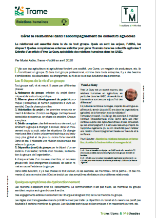 Dès que des agriculteurs et agricultrices fondent une société, une Cuma, un magasin de producteurs, etc. ils constituent un groupe. Et dans tout groupe professionnel, comme dans toute entreprise, il y a des besoins d’amélioration, de sécurisation, de changement, au fil de la vie et des évolutions des personnes.