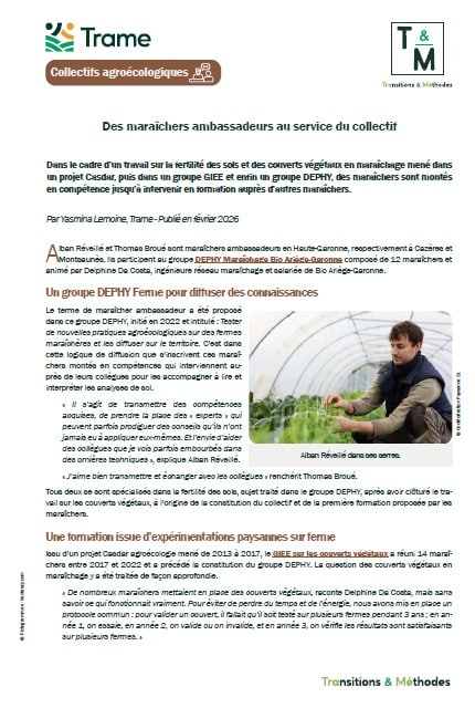 Alban Réveillé et Thomas Broué sont maraîchers ambassadeurs en Haute-Garonne, respectivement à Cazères et Montsaunès. Ils participent au groupe DEPHY Maraîchage Bio Ariège-Garonne composé de 12 maraîchers et animé par Delphine Da Costa, ingénieure réseau maraîchage et salariée de Bio Ariège-Garonne.