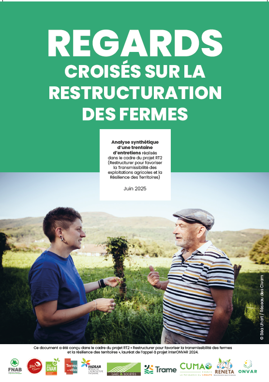 Ce document propose une analyse synthétique d’une trentaine d’entretiens réalisés en 2024 et 2025 dans le cadre du projet RT2 (Restructurer pour favoriser la Transmissibilité des exploitations agricoles et la Résilience des Territoires), projet Inter-ONVAR porté par 9 organismes partenaires.